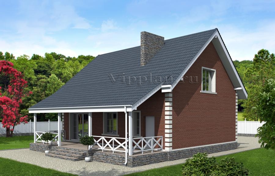 Проект индивидуального одноэтажного жилого дома с мансардой с размерами здания 12,18 x 12,48 м. Наружная отделка здания – клинкерная плитка, фасадная штукатурка. Фундамент – щелевой, «стена в грунте» (под несущими стенами). Наружные стены – из пенобетонного блока с утеплением напыляемым пенополиуретаном и отделкой бетонным сайдингом. Внутренние стены – из пенобетонного блока. Перегородки – из пенобетонного блока. Пол 1-го этажа – пол по грунту. Межэтажное перекрытие – сборные ж/б плиты. Перемычки: монолитные ж/б и из профиля проката. Крыша – многоскатная. Кровля – металлочерепица. Окна – металлопластиковые. Лестница – металлическая (деревянная по металлическому каркасу).